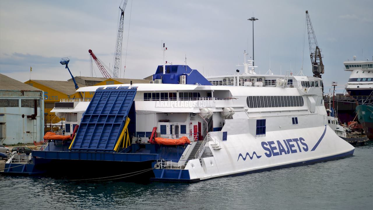 Το ταχύπλοο της SEAJETS είχε δεξαμενιστεί τον περασμένο Ιούνιο στα Ναυπηγεία του Ομίλου Σπανόπουλου.   Έκτοκτε δεν ανέλαβε υπηρεσία, ούτε μέχρι στιγμής έχει ανακοινωθεί κάτι επίσημο από την εταιρεία του για δρομολόγηση ή αν θα παίξει ρόλο «πασπαρτού».