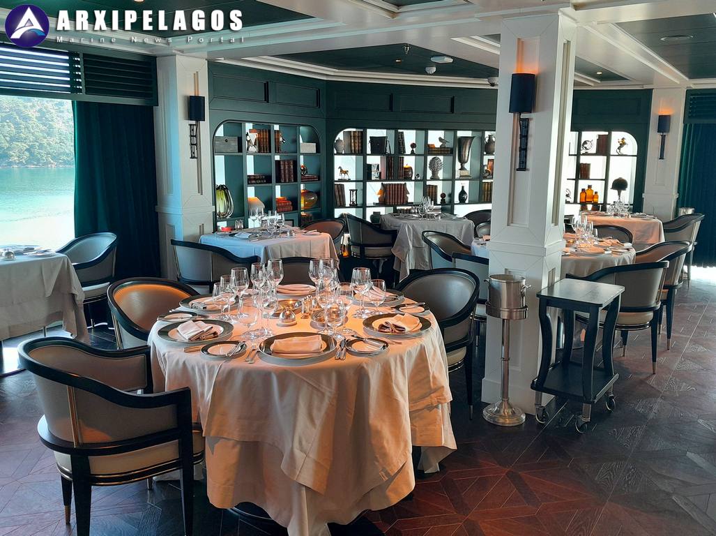 Στο ίδιο κατάστρωμα βρίσκεται και το Grand Lounge, 44 θέσεων, με μεγάλη κάβα κρασιών.